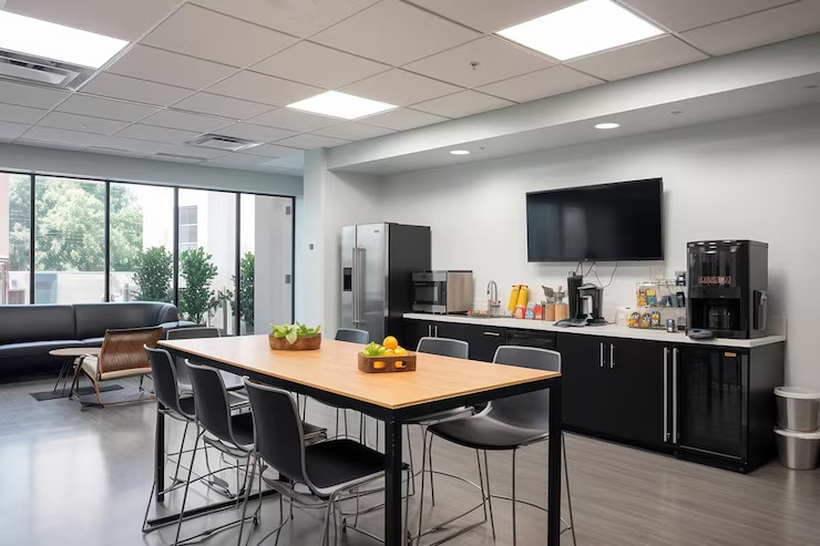Pantry kantor merupakan area khusus yang digunakan karyawan untuk makan, minum, atau sekadar beristirahat sejenak di sela pekerjaan. Biasanya, pantry dilengkapi dengan fasilitas seperti dispenser, microwave, kulkas, hingga meja makan sederhana. Area ini menjadi salah satu titik interaksi sosial yang cukup penting di lingkungan kerja.